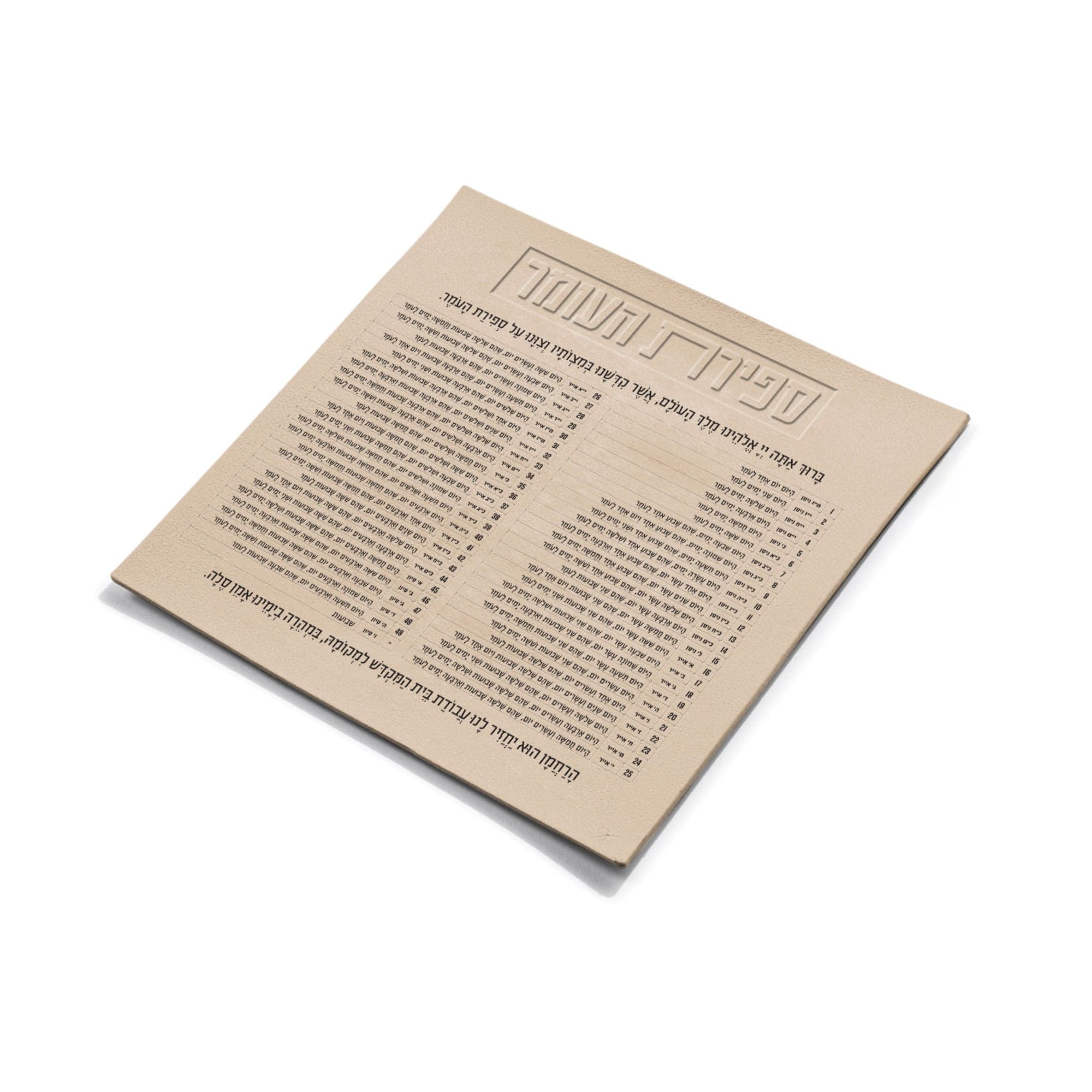 Bring a touch of elegance and practicality to your Sefiras HaOmer with the Leather Sefiras HaOmer Magnet. Crafted with the finest leather, this beautifully designed magnet is a perfect blend of tradition and sophistication. Each day of the Omer is clearly marked, making it effortless to keep track of your count. The leather finish adds a refined, classic touch, while the magnetic backing ensures it stays securely on your fridge or another visible spot, making the counting of the Omer an easy and beautiful experience. This innovative, exclusive chart has all the hebrew words you will need to count correctly.