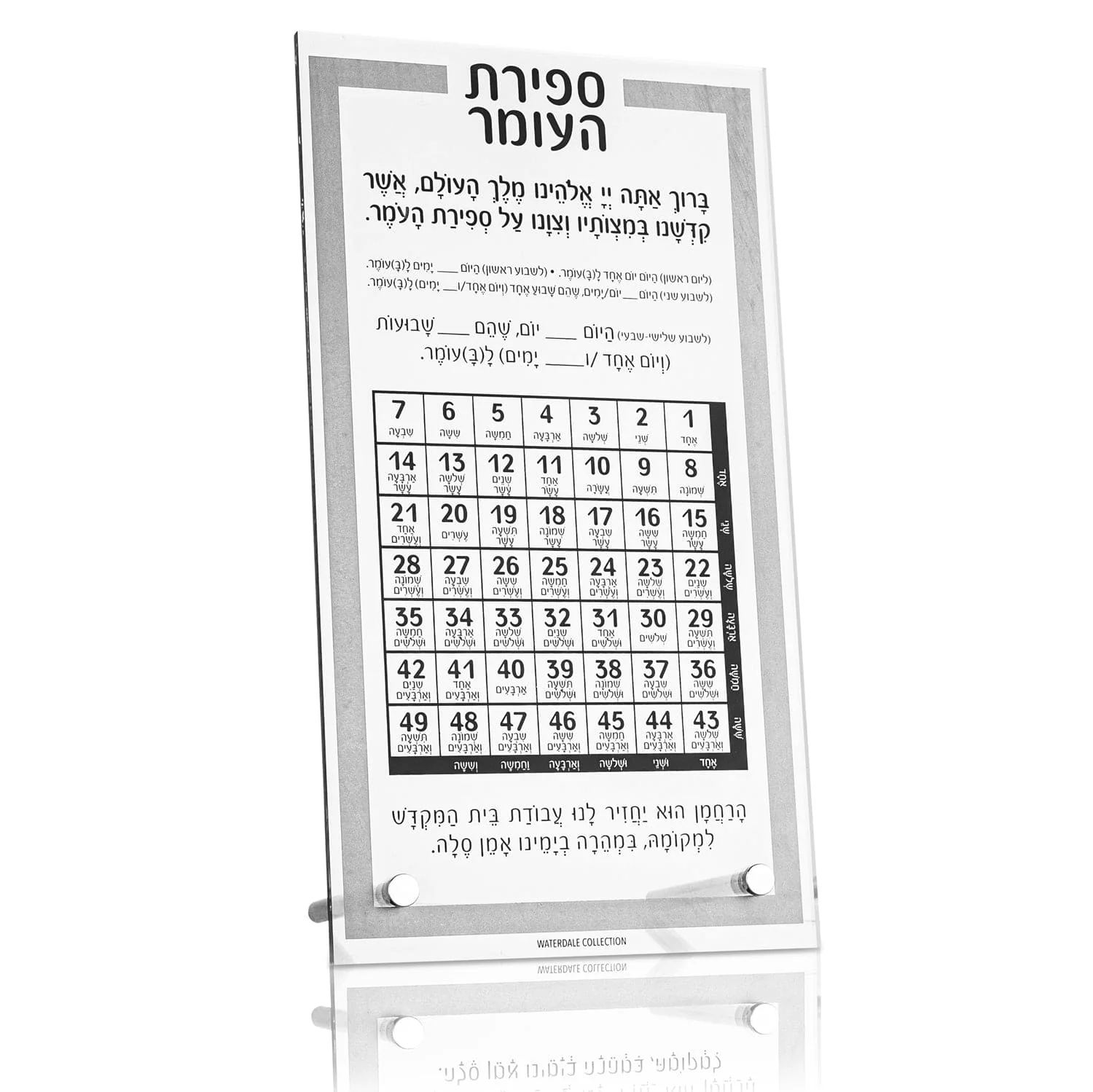 Bring tradition into your home with our Traditional Tabletop Sefiras HaOmer, a beautifully crafted piece that captures the essence of this meaningful mitzvah. Designed with timeless appeal, this elegant frosted display makes tracking Sefira each night simple and memorable. Its classic design complements any home, offering both function and beauty. Whether for your own family or as a thoughtful gift, the Traditional Tabletop Sefiras HaOmer will help enrich your Sefiras HaOmer experience for years to come.