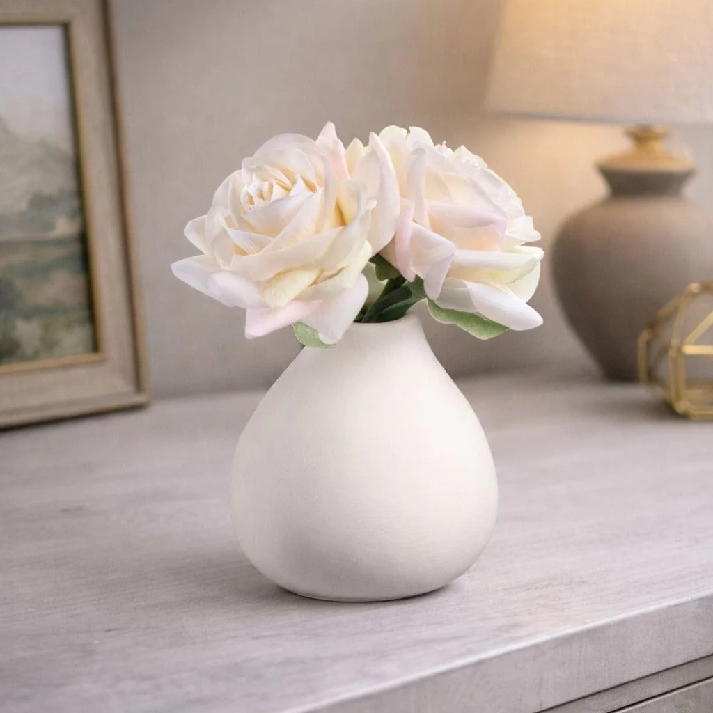 White Faux Floral Teardrop Vase